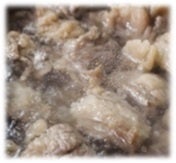 ほど良い弾力やコリコリ食感、牛の旨味が凝縮され煮込み料理に適した牛すじ(メンブレン=牛の横隔膜ハラミの筋)を選定し使用しています。