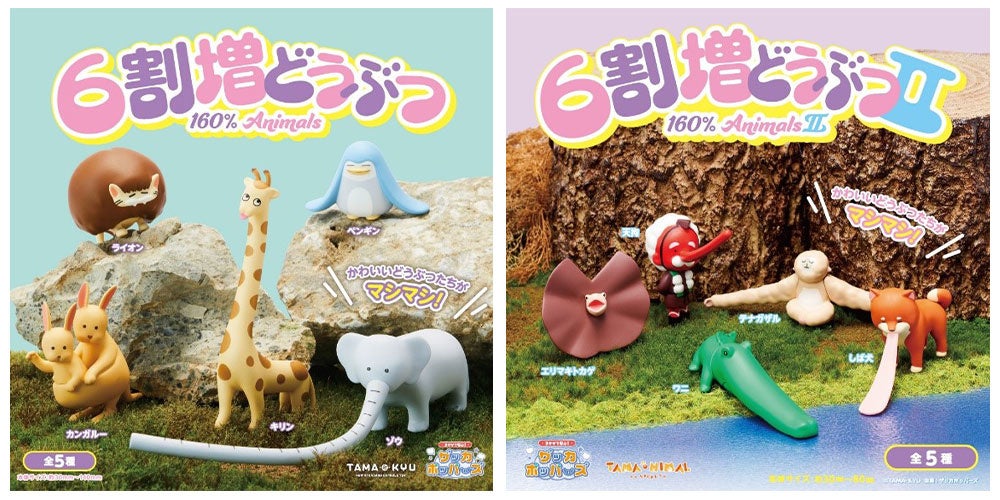 かわいさマシマシ!オリジナルカプセルトイブランド『TAMA-KYU(たまきゅう)』の大人気商品「6割増どうぶつ」が超ロング&ビッグなぬいぐるみになって全国のラウンドワン限定プライズとして登場!