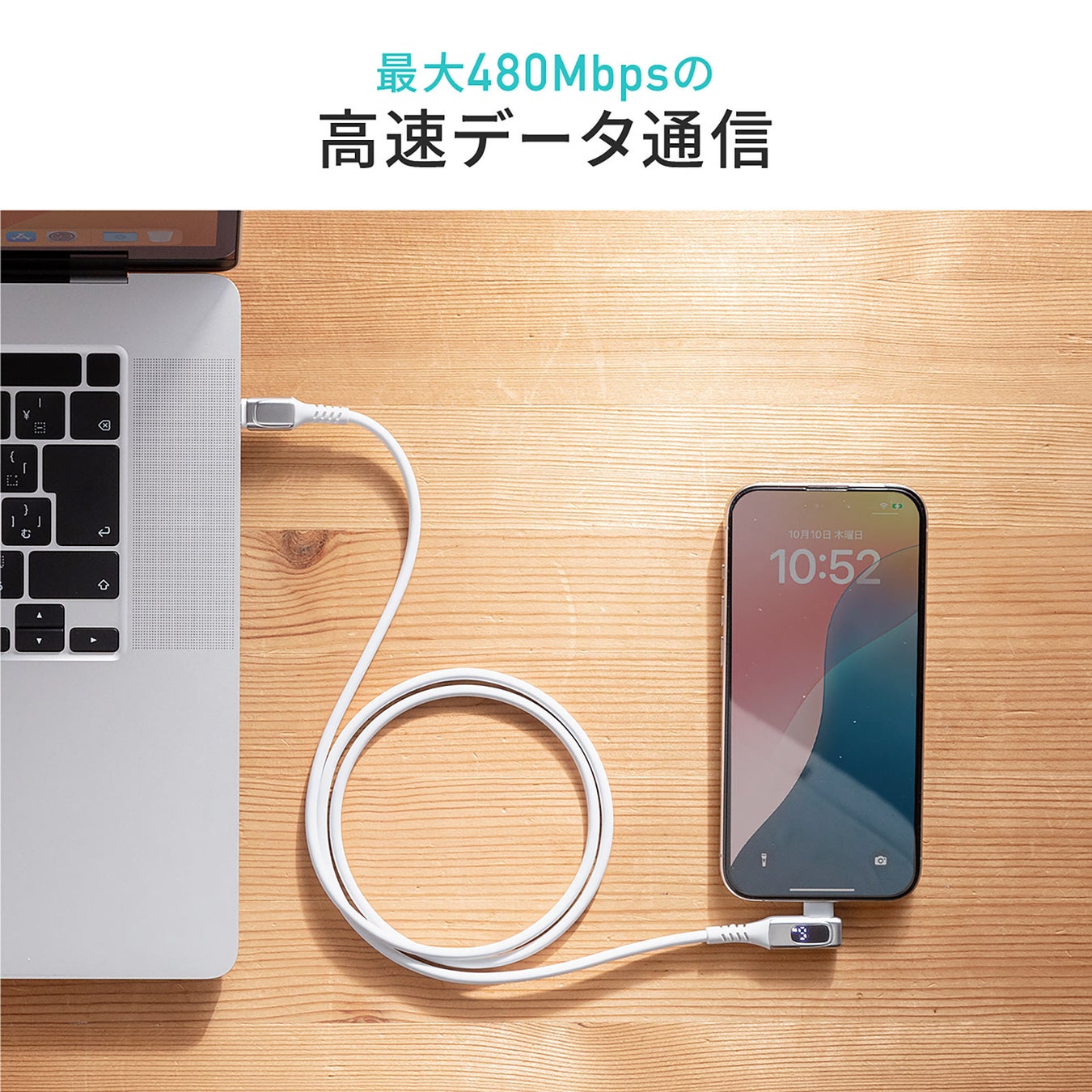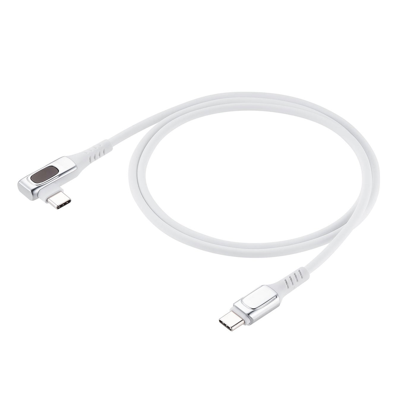 USB Type-Cケーブル W数表示機能付き L字コネクタ PD240W対応 やわらかシリコンケーブル USB2.0 iPhone16 ホワイト