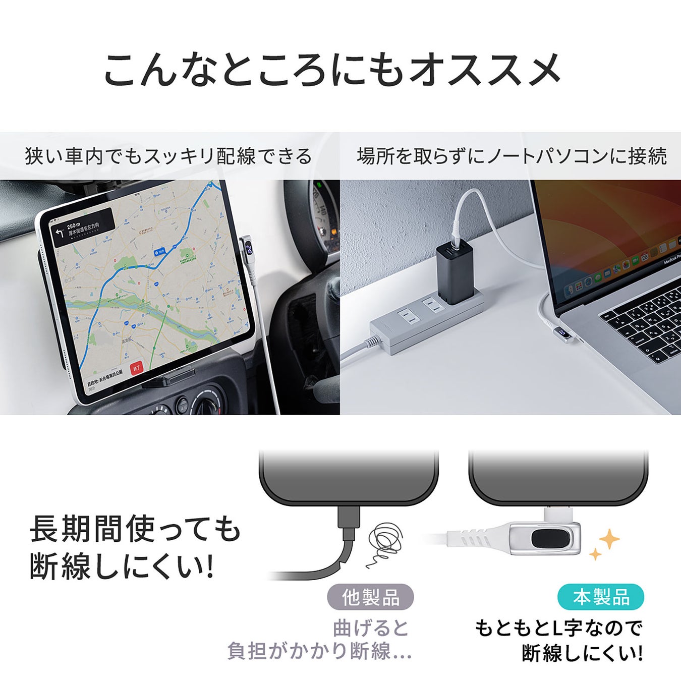 ■L字コネクタでスマートな使い心地