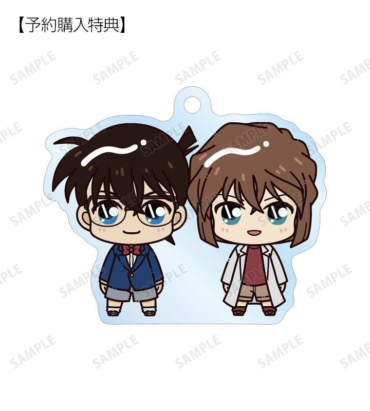 江戸川コナン、工藤新一、毛利蘭、灰原哀、赤井秀一、沖矢昴、ジン、ウォッカ、ベルモット、バーボンがちょこんと立っているちびキャラを新たに描き起こし、アクリルキーホルダーに仕上げました。