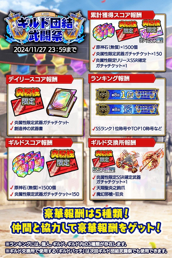 ギルドメンバーと力を合わせて豪華報酬を獲得するイベント「ギルド団結武闘祭」が開催!