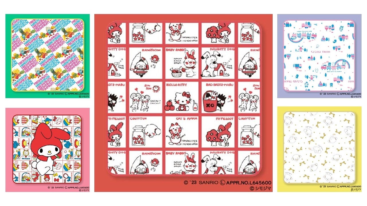 【サンリオキャラクターズ×シモジマ】ハンドタオル(サンリオキャラクターズ×ストップペイル/マイメロディ×モーニング/こぎみゅん×ニューリボン/ハンギョドン×レターフル―ツ2/バッドばつ丸×トレイン) 各価格 ¥1,320(税込)