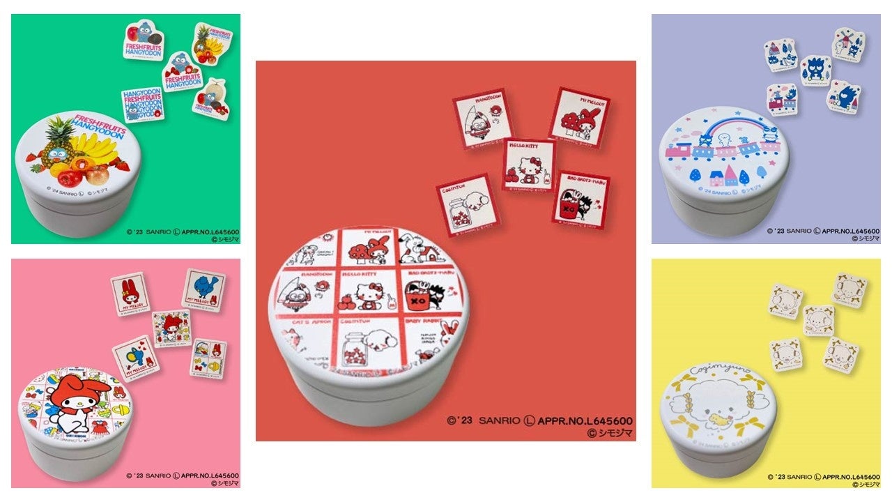 【サンリオキャラクターズ×シモジマ】ミニ缶 ミニステッカー5枚入り(サンリオキャラクターズ×ストップペイル/マイメロディ×モーニング/こぎみゅん×ニューリボン/ハンギョドン×レターフル―ツ2/バッドばつ丸×トレイン) 各価格 ¥1,320(税込)