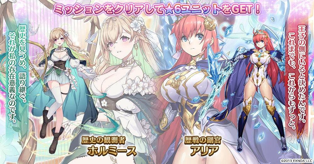 ※「歴史の観測者ホルミース」、「歴戦の副官アリア」はミッション終了後に仲間になります。