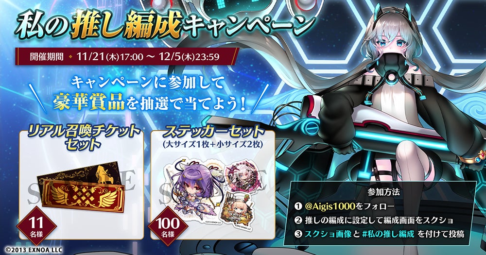 11月21日(木)17:00より、『千年戦争アイギス』公式X(https://x.com/Aigis1000)にて
