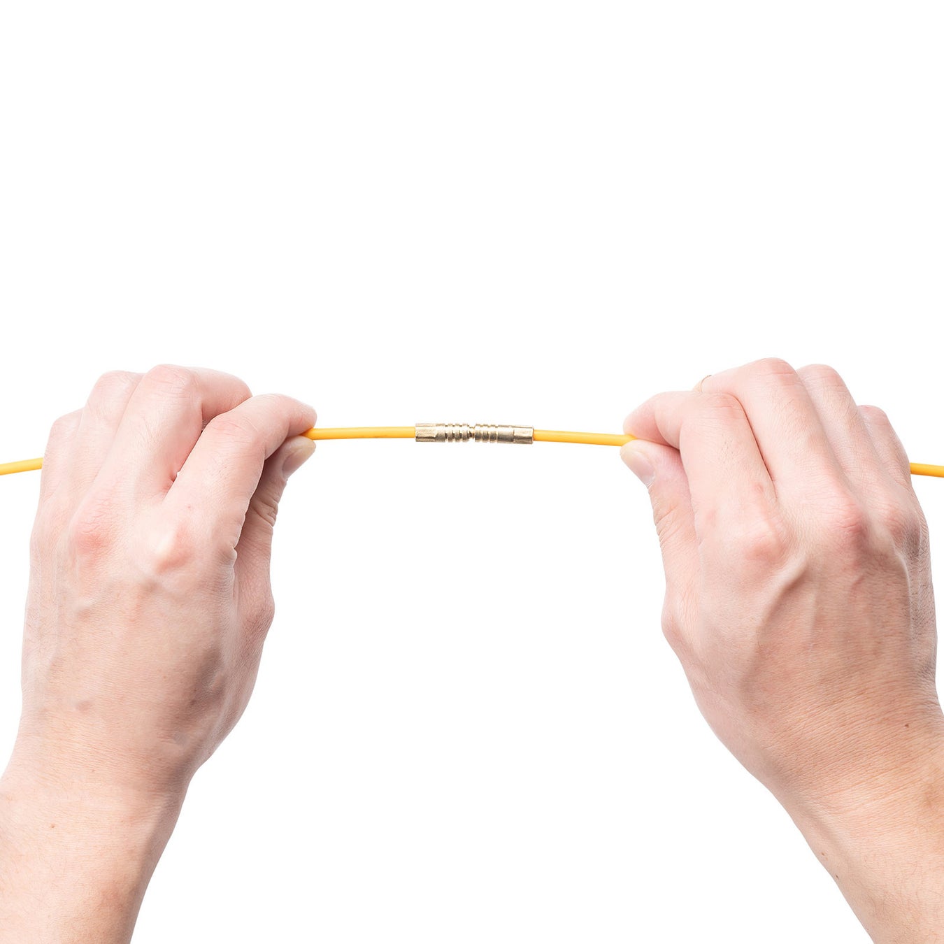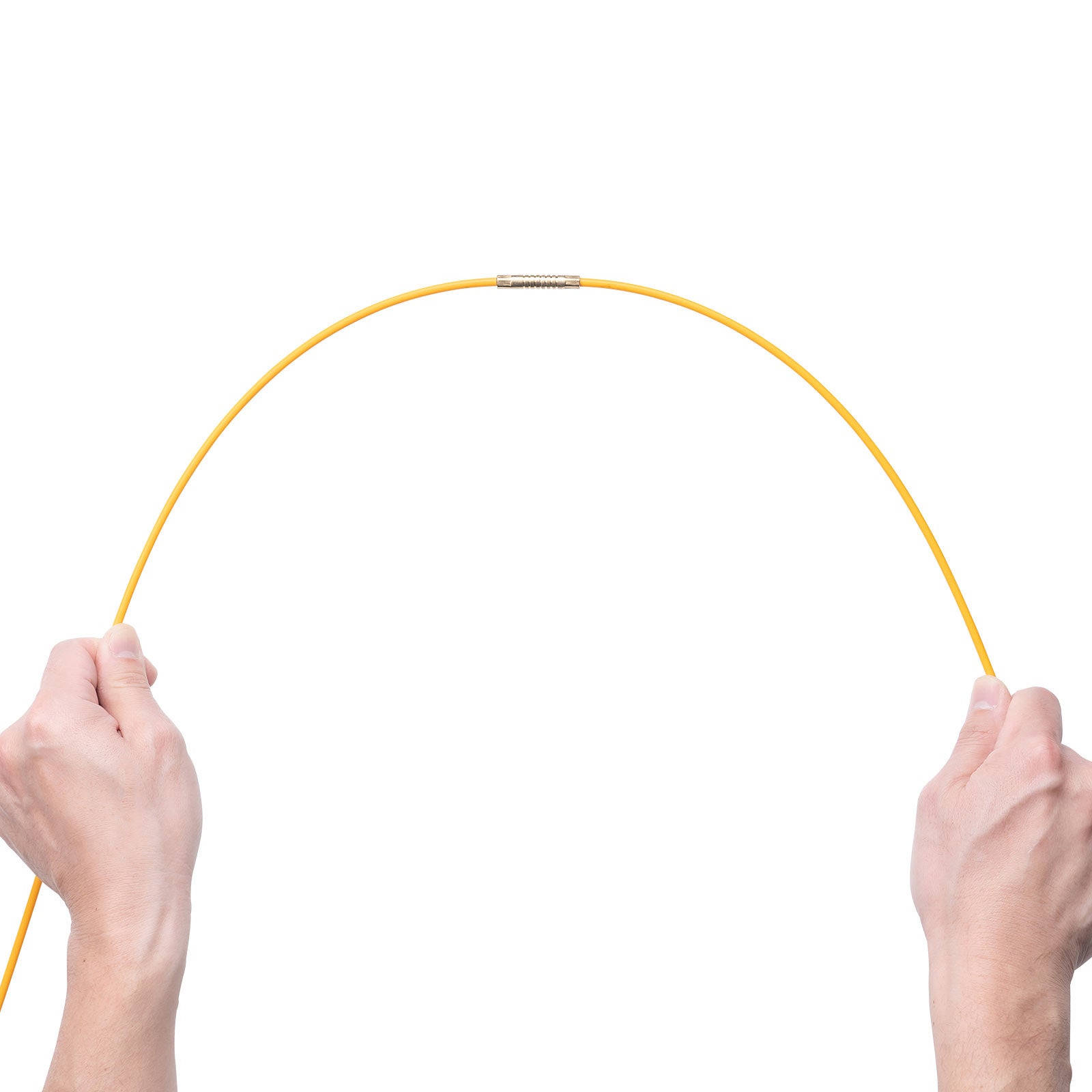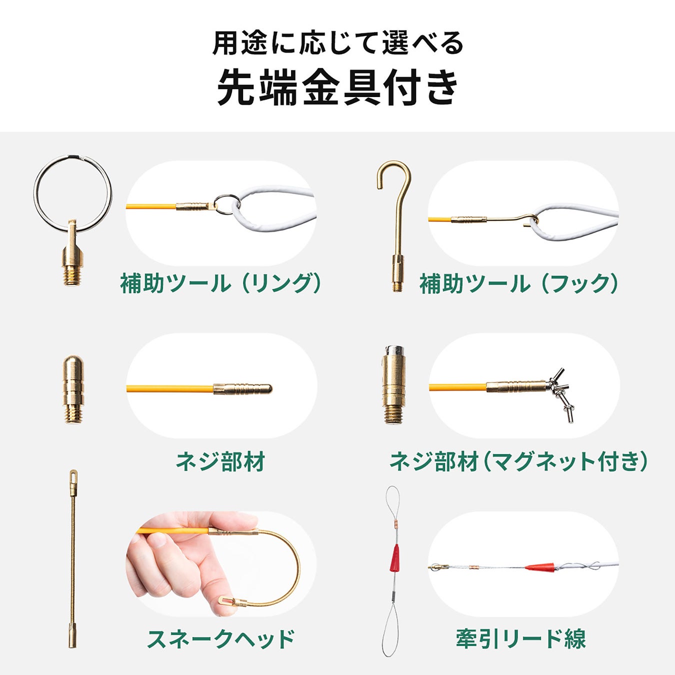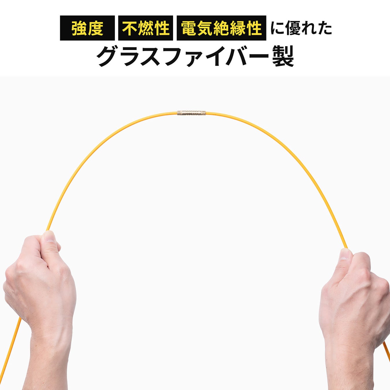 グラスファイバー製で強度や不燃・絶縁性に優れており、繋ぎ合わせることで最大10mまで長さを調整できる通線ワイヤー