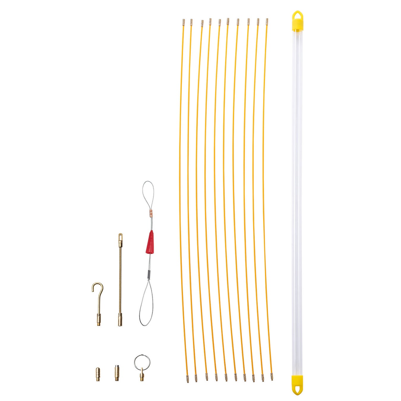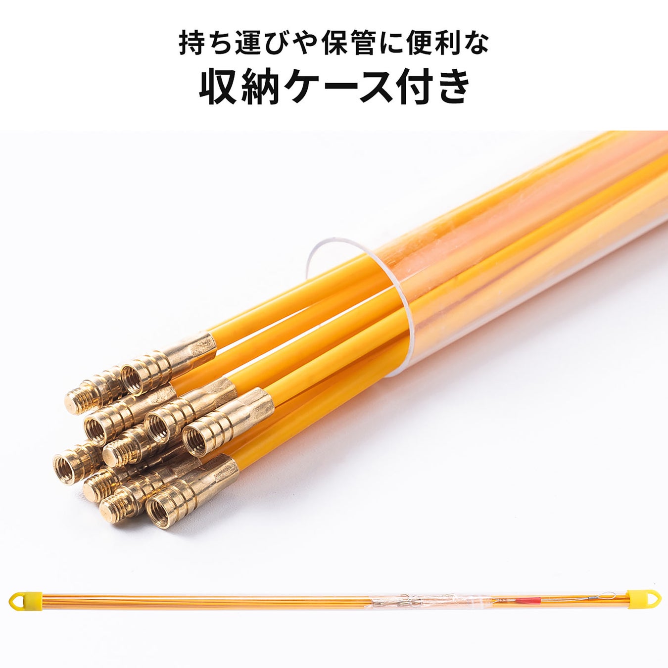 通線ワイヤー 通線ロッド ジョイントタイプ 1m 10本セット 最大10m ロッド径4mm グラスファイバー製 配線通し 配線ガイド 先端アタッチメント付き 持ち運び 収納ケース付き