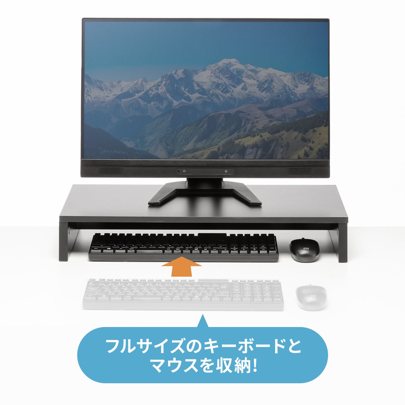 マウスやフルサイズのキーボードを収納でき、デスクをスッキリ使えます。