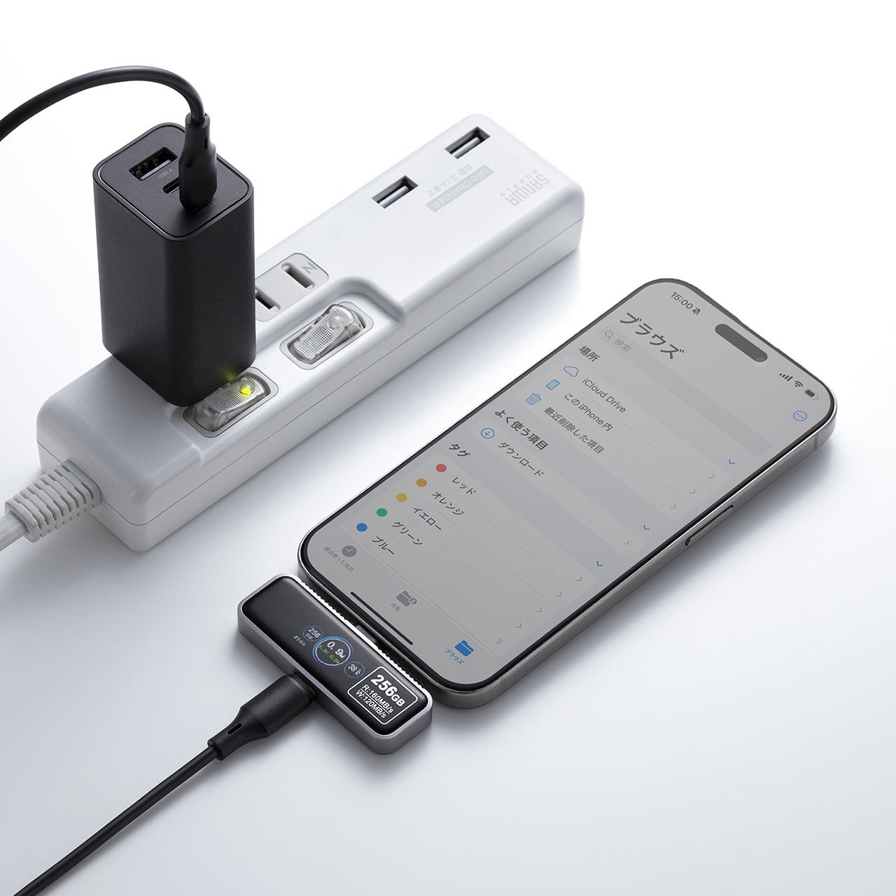 iPhone15 / 16やiPad、android、PCなどUSB Type-Cポートを搭載した各種機器に対応します。