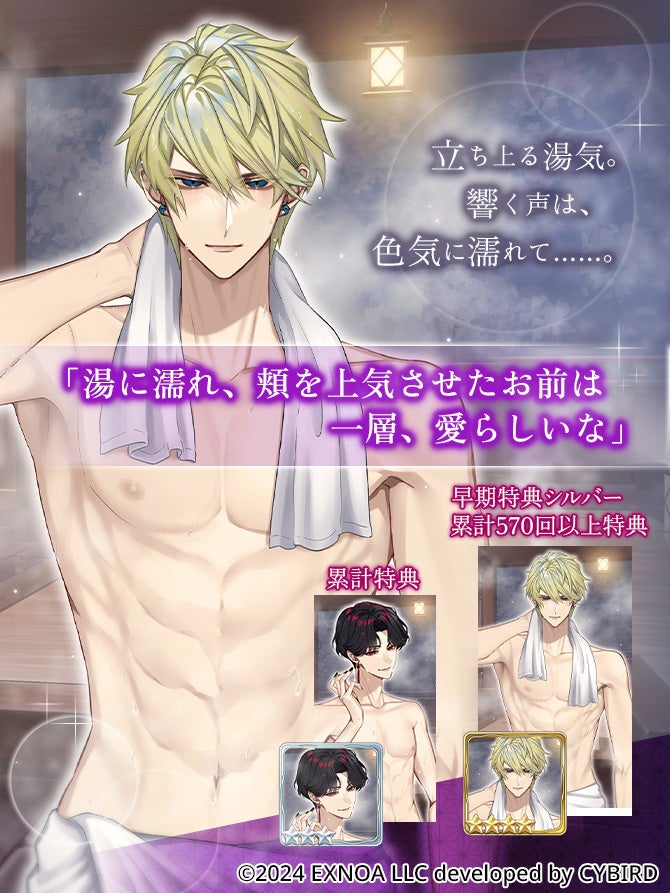 DMM GAMES新作女性向け恋愛ゲーム「夢幻楼と眠れぬ蝶」本編進めようイベント「お風呂でランデブー ~夢幻楼・裸祭り~」を開催中&キャラクターの壁紙イラストがもらえる相性診断も公開!