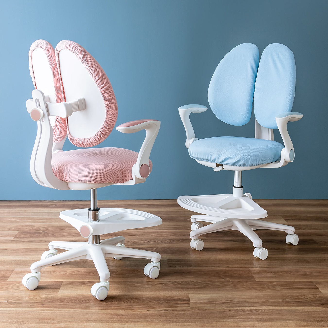 背骨にフィットする背もたれで正しい姿勢をキープしてくれる、ダブルバッグを採用した学習椅子
