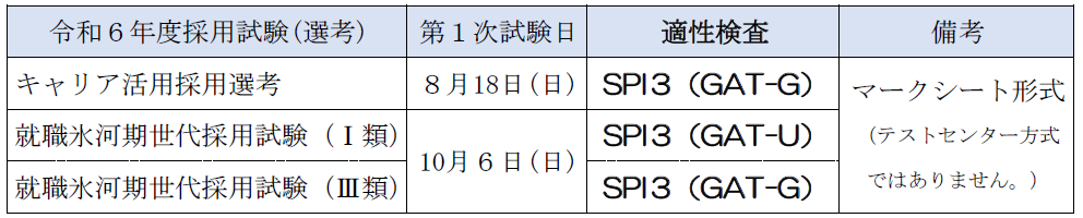 下表の採用試験等の適性検査は、試験会場でマークシートに記入する形式で実施します。