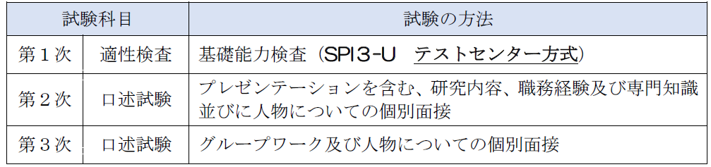 ※ 採用試験に関する詳細は、別途、試験案内でお知らせします。