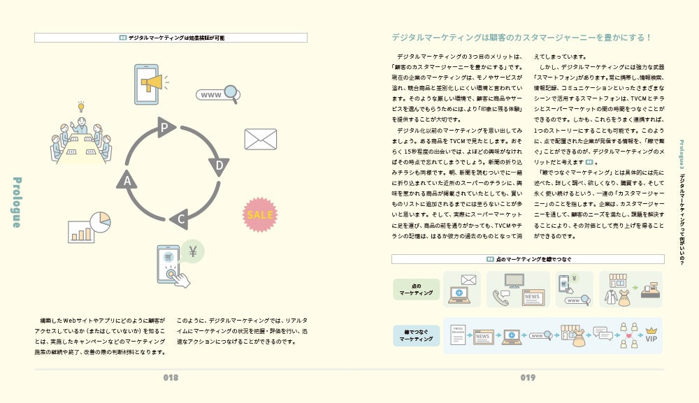 「いま、どうするのが効果的で持続的か」を「何をやってはいけないか」などの注意点とともに、デジタルマーケティングの技術的な側面、顧客の獲得や関係の維持に関する方法論、進める上で注意すべき点を紹介、テクノロジーを利用し安全かつ効率的なパーソナルデータの活用をどう実現していくかについてをわかりやすく解説していきます。
