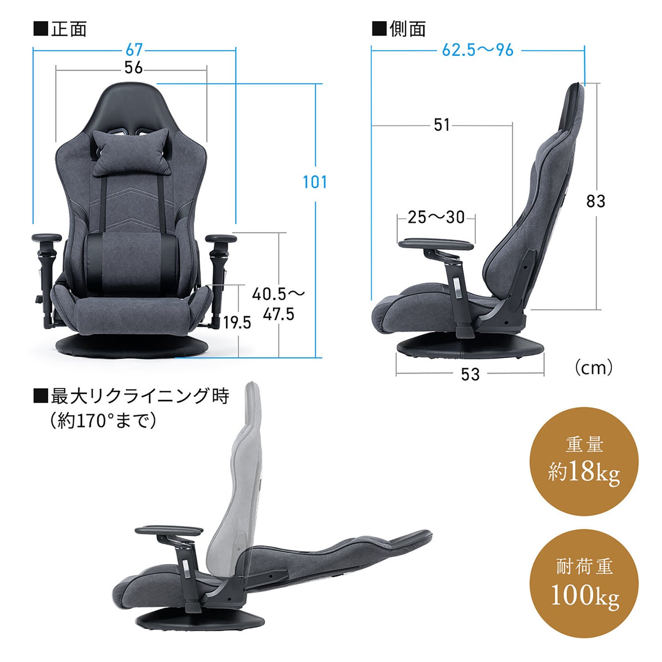 ・170°のリクライニング機能でその場でリラックス可能