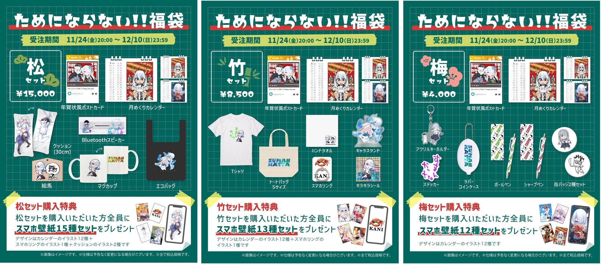 2023年11月24日(金)より、「すまんかった」の【ためにならない!!】とヴィレッジヴァンガードのコラボ福袋が発売決定!!なんと今回のコラボ限定福袋企画のために、『西念幽子』ちゃんのイラストを描き下ろしてくださいました!アナタはどのアートイラストが好きですか?2024年の月めくりカレンダーや、絵馬やマグカップなど盛りだくさんです!オンライン限定予約なので見逃し注意です!!
