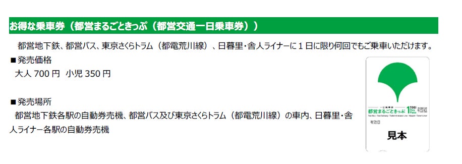 初夏のお出かけシーズンに、お得な都営まるごときっぷ(都営交通1日乗車券)で沿線地域の街巡りや映画鑑賞をお楽しみいただいてはいかがでしょうか。