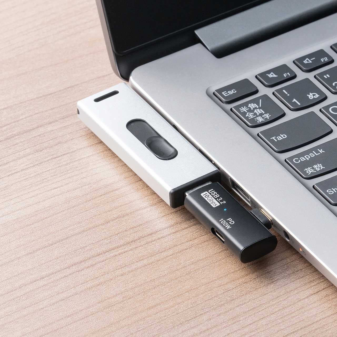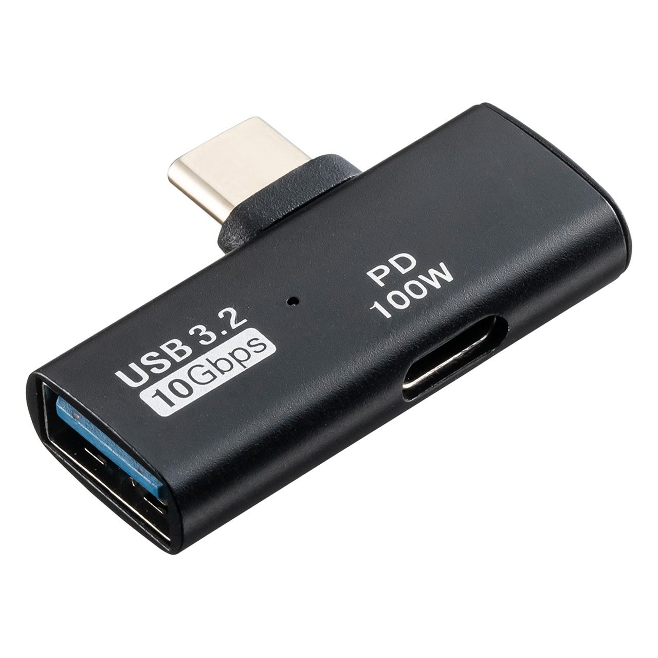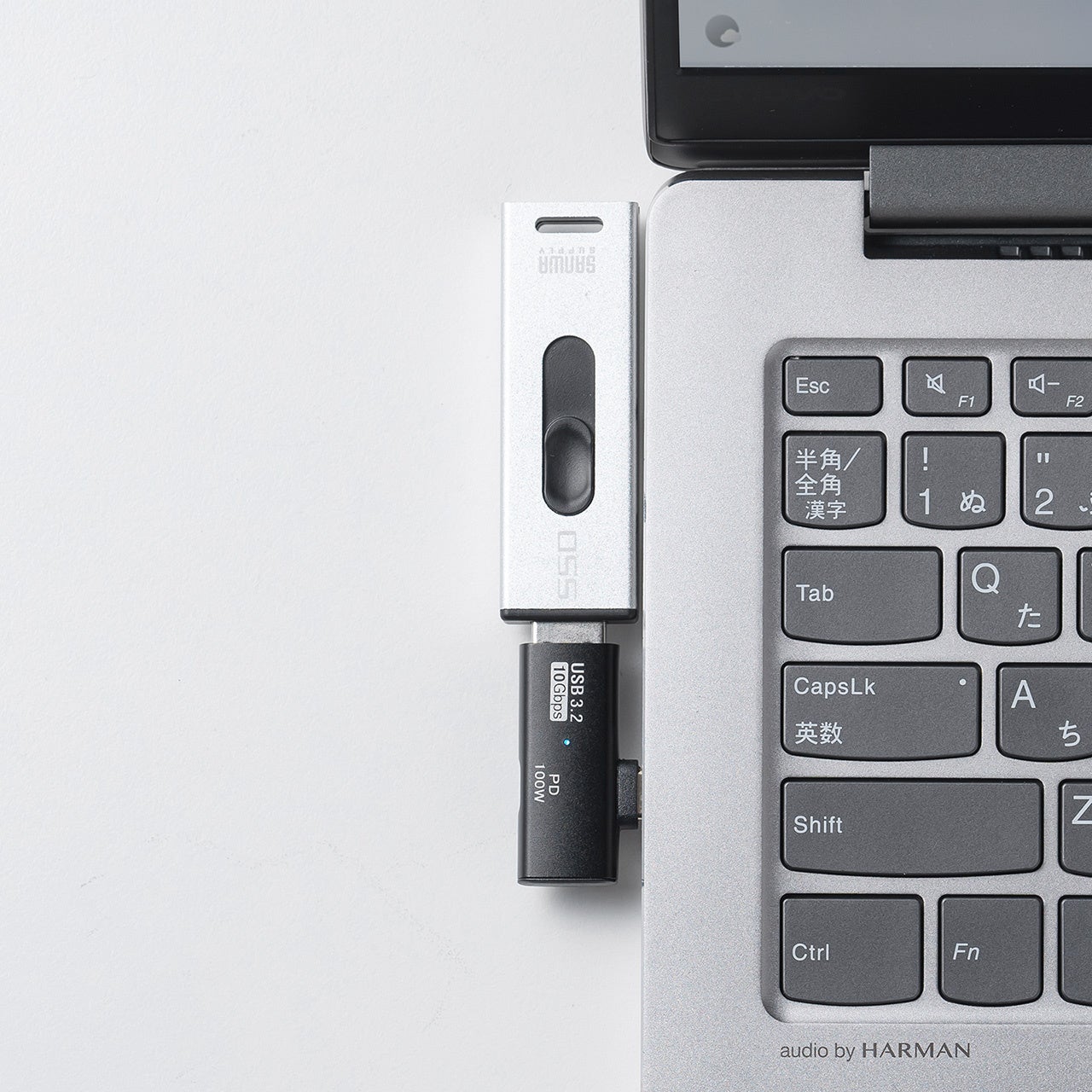USB A to USB C 変換アダプタ L字型 充電対応 PD100W USB 10Gbps AppleProRes対応 通電LED ブラック