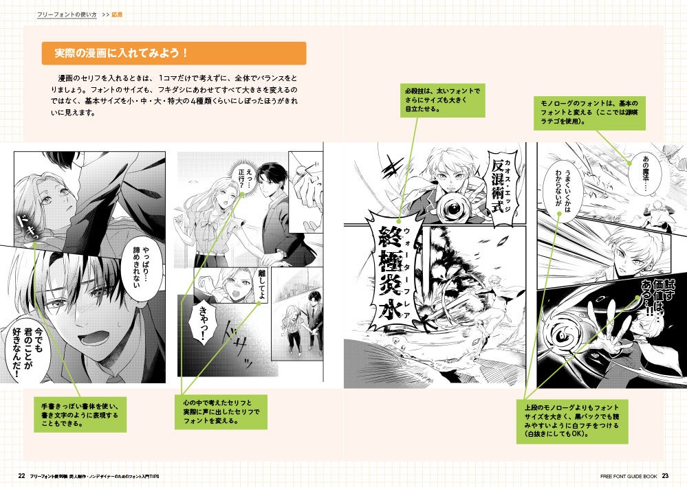 本書では、100種類以上のフリーフォントの紹介と、実際の活用方法を解説しています。同人誌や漫画、小説への使用はもちろん、プロの現場でも使える高品質な最新フォントが一挙ダウンロード可能です(※下記〈ダウンロードについて〉を参照)。