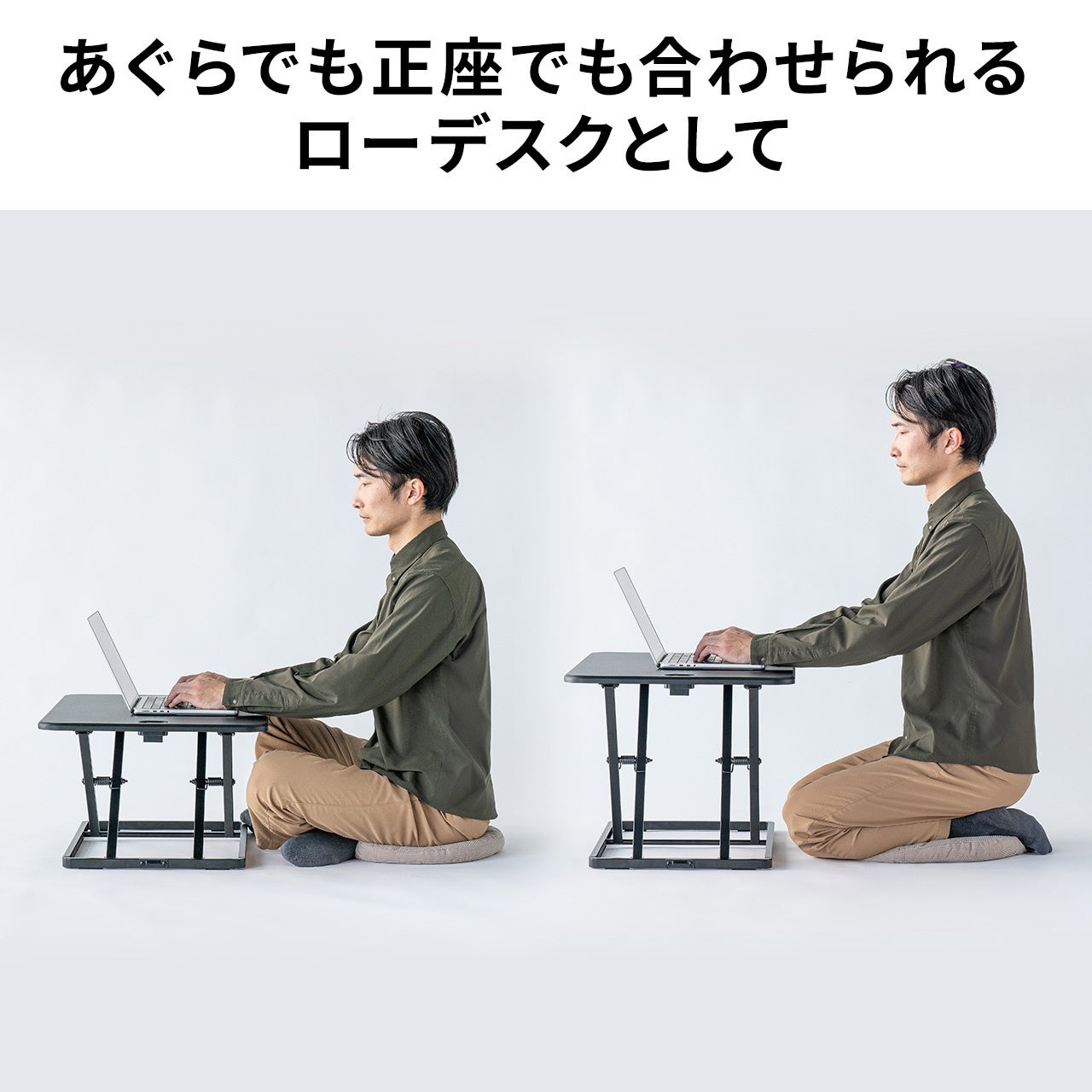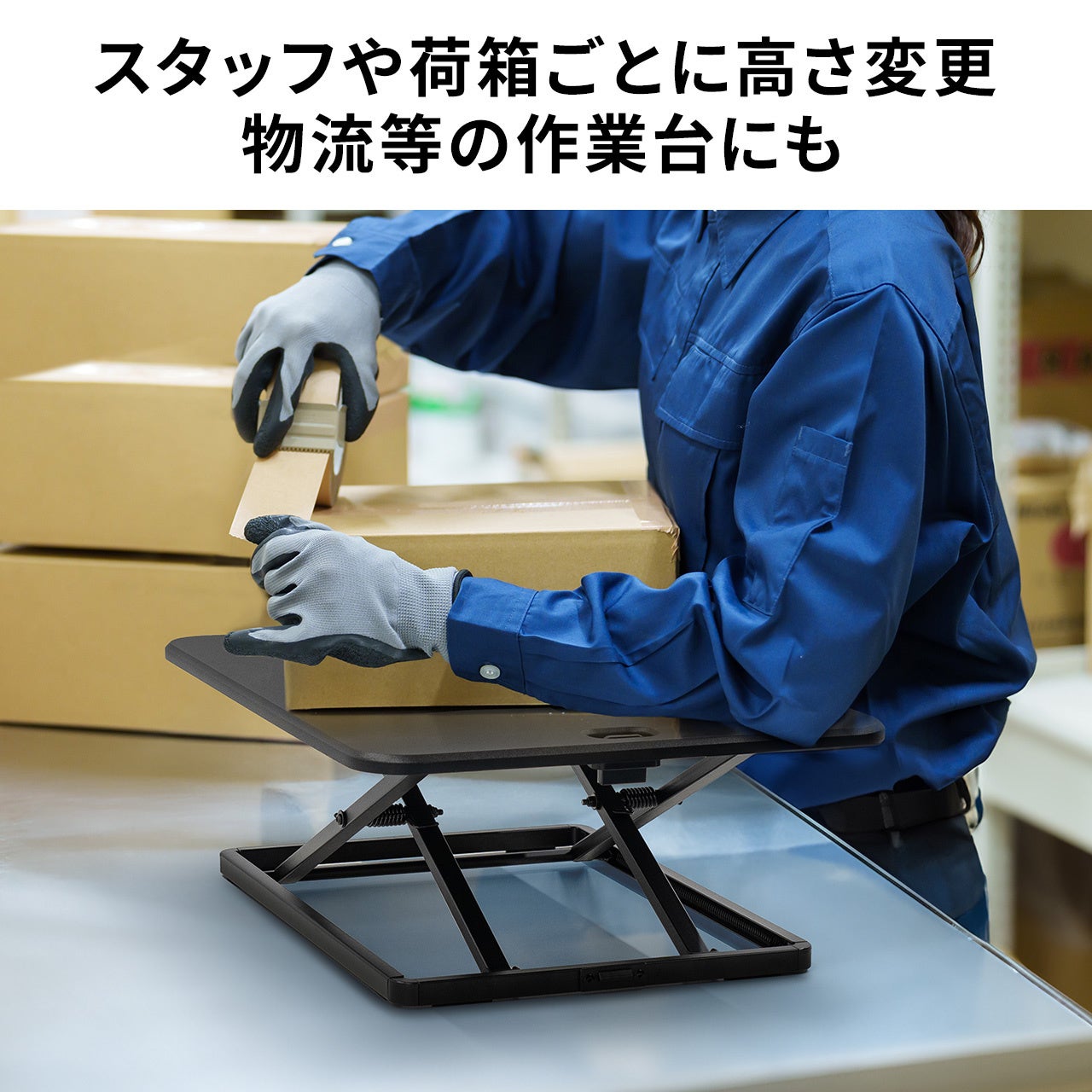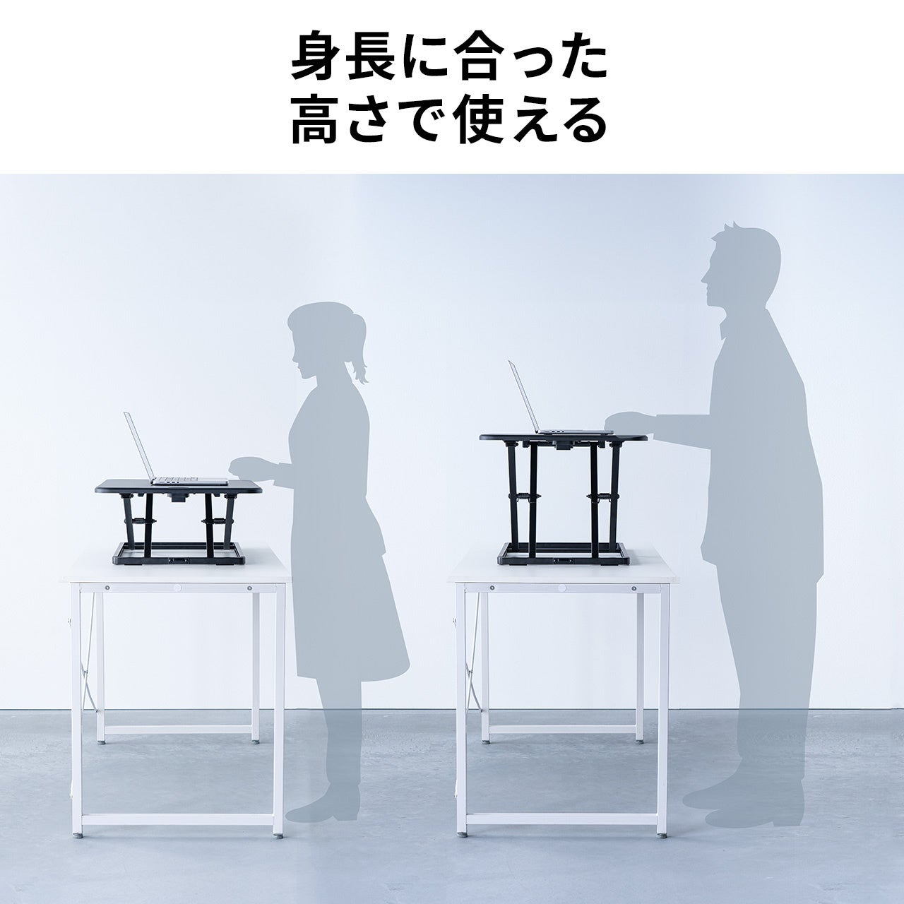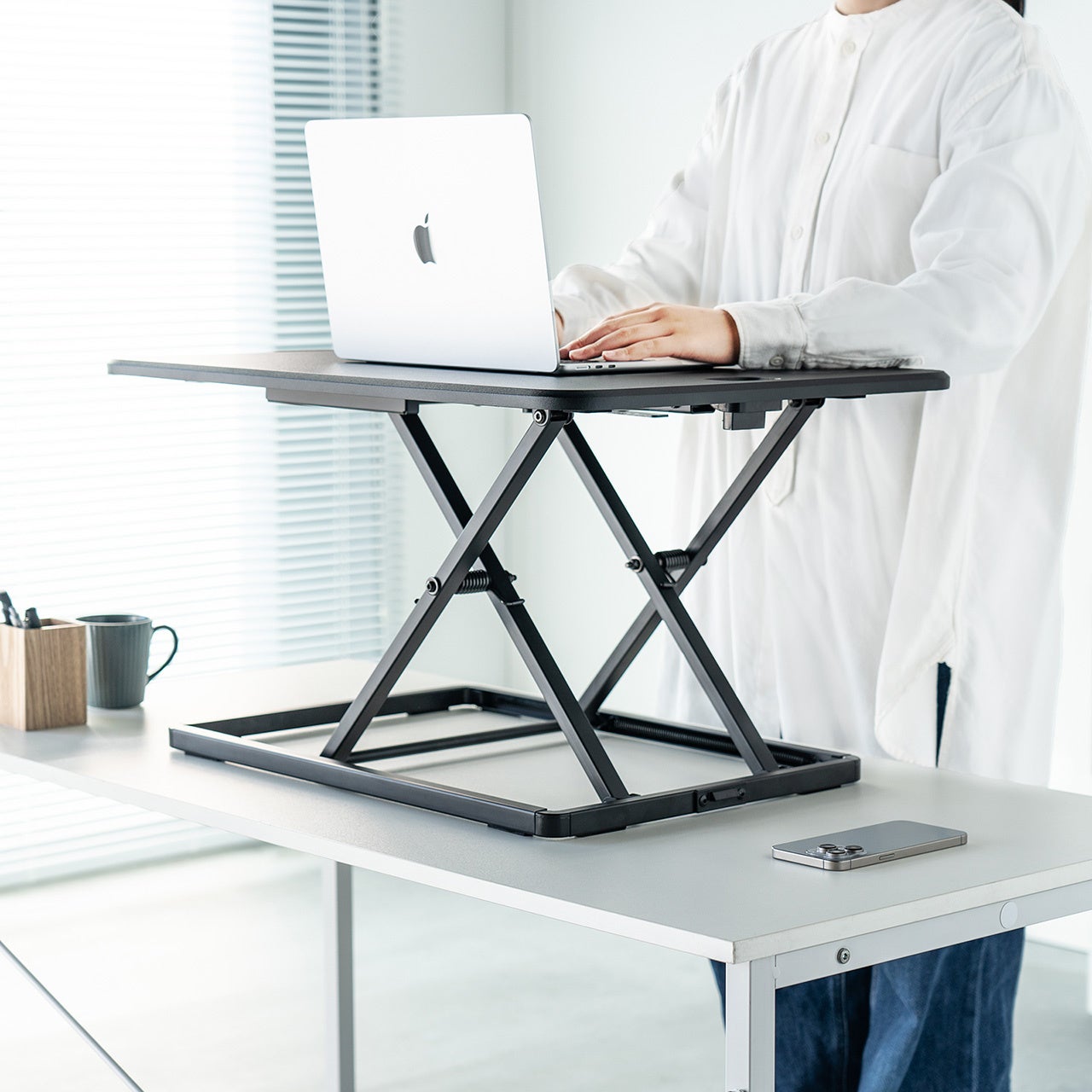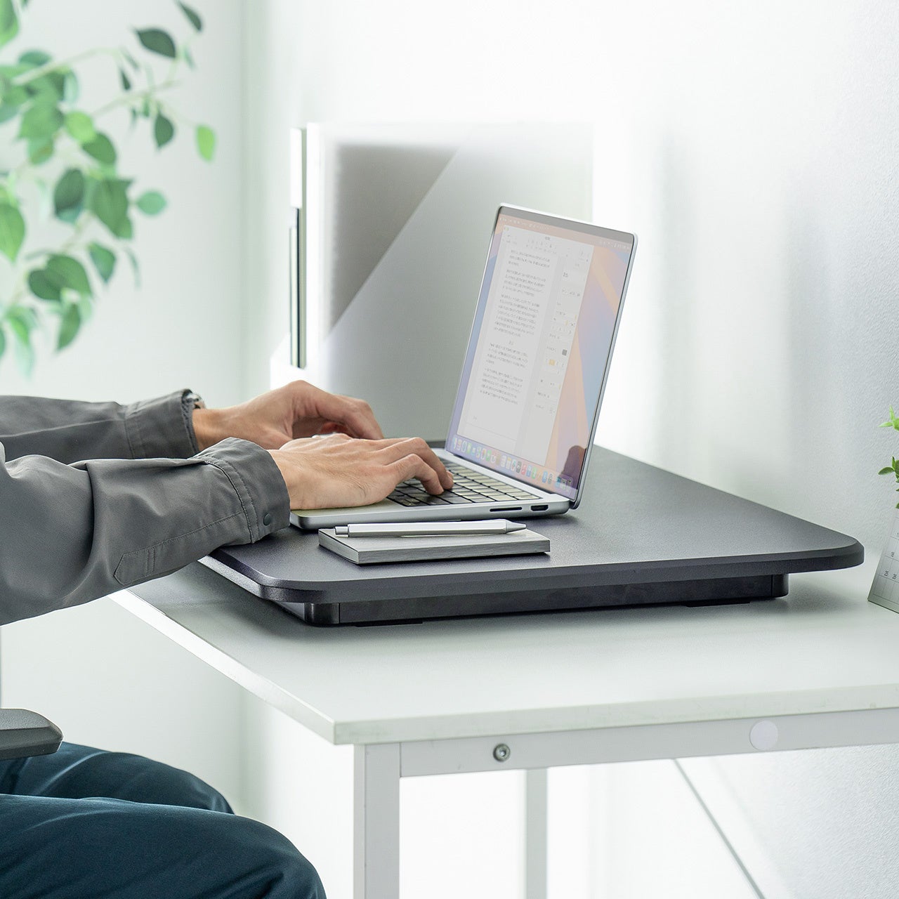 デスクにポンと置くだけで、いつもの机がスタンディングデスクに早変わり!立って作業することで集中力アップや健康維持が期待でき、仕事の効率もグンと向上します。