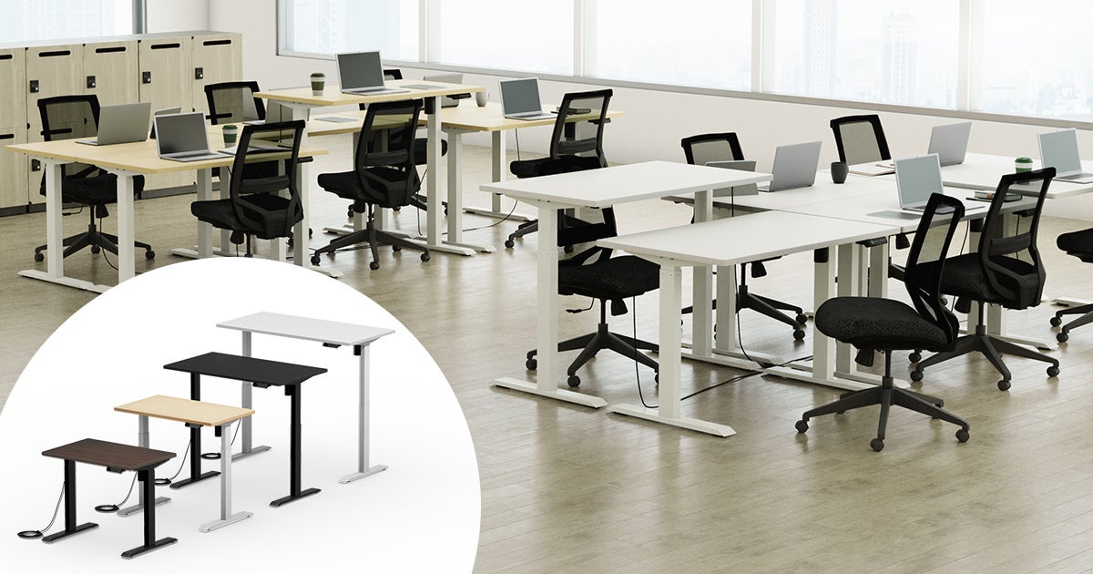 全33サイズ×4色で選べる132通り、使う人にあわせて立ち・座りが自由にできるサイズオーダー電動昇降デスクを発売
