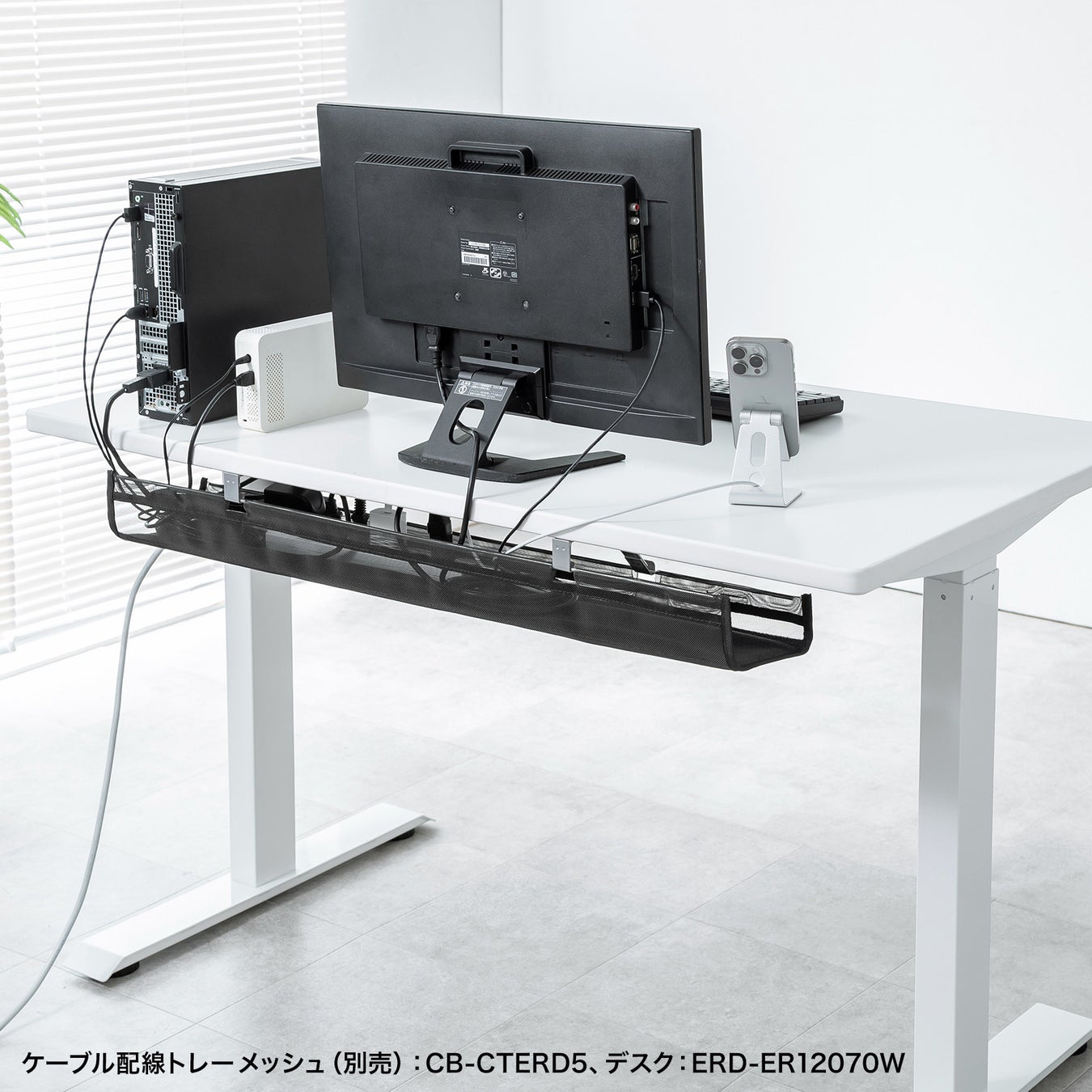 モニターアーム、ケーブルトレーの取り付けに対応