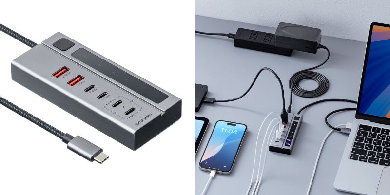 USB充電器とUSBハブが1台で完結!最大45WのPD充電が可能なUSBハブを1月23日に発売