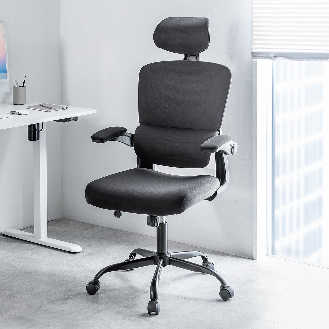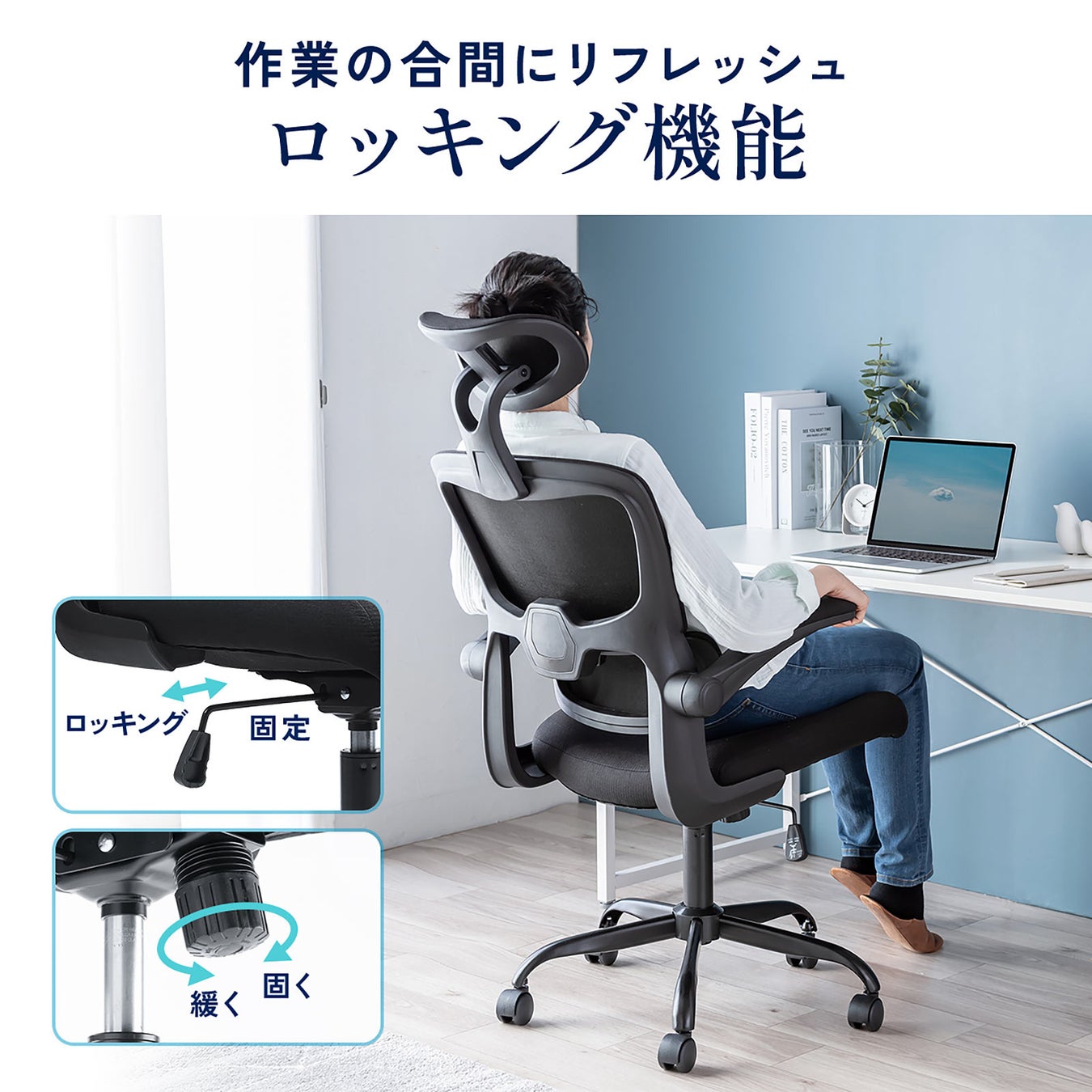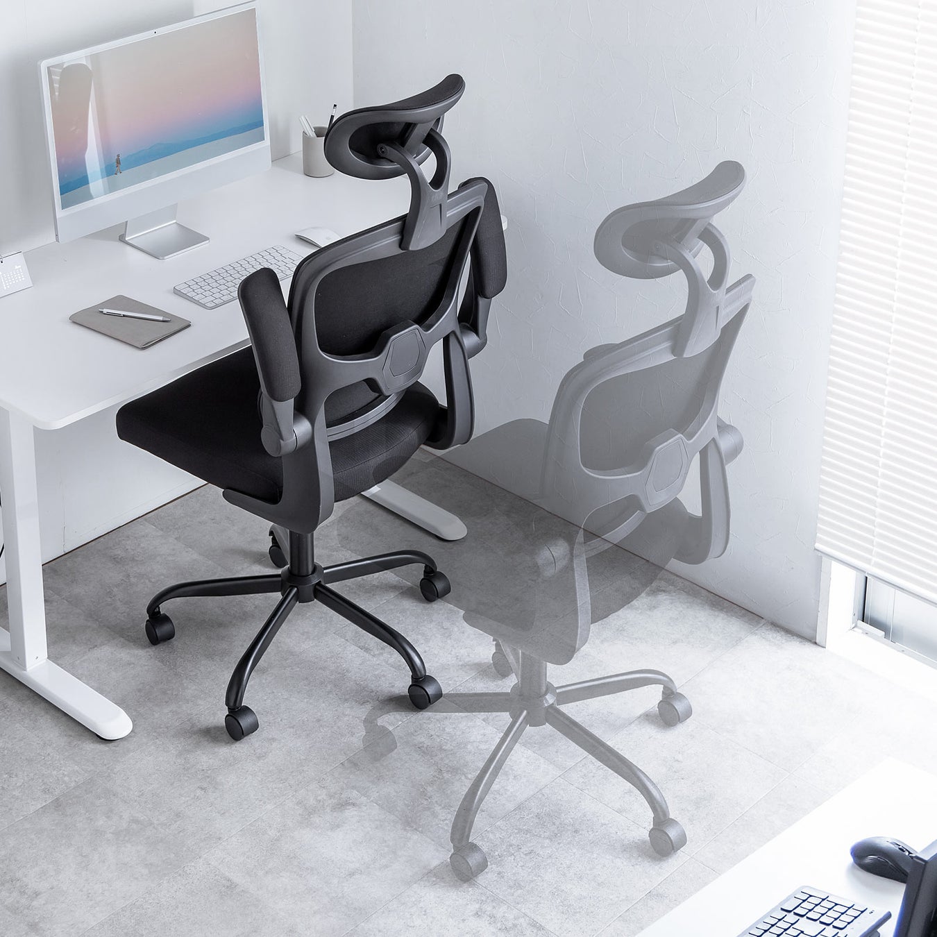 跳ね上げ式アームレストは、必要なときだけ使える便利な設計。使わないときはスムーズに収納でき、狭いスペースでも邪魔になりません。デスク周りの自由度が広がり、作業効率が向上します。