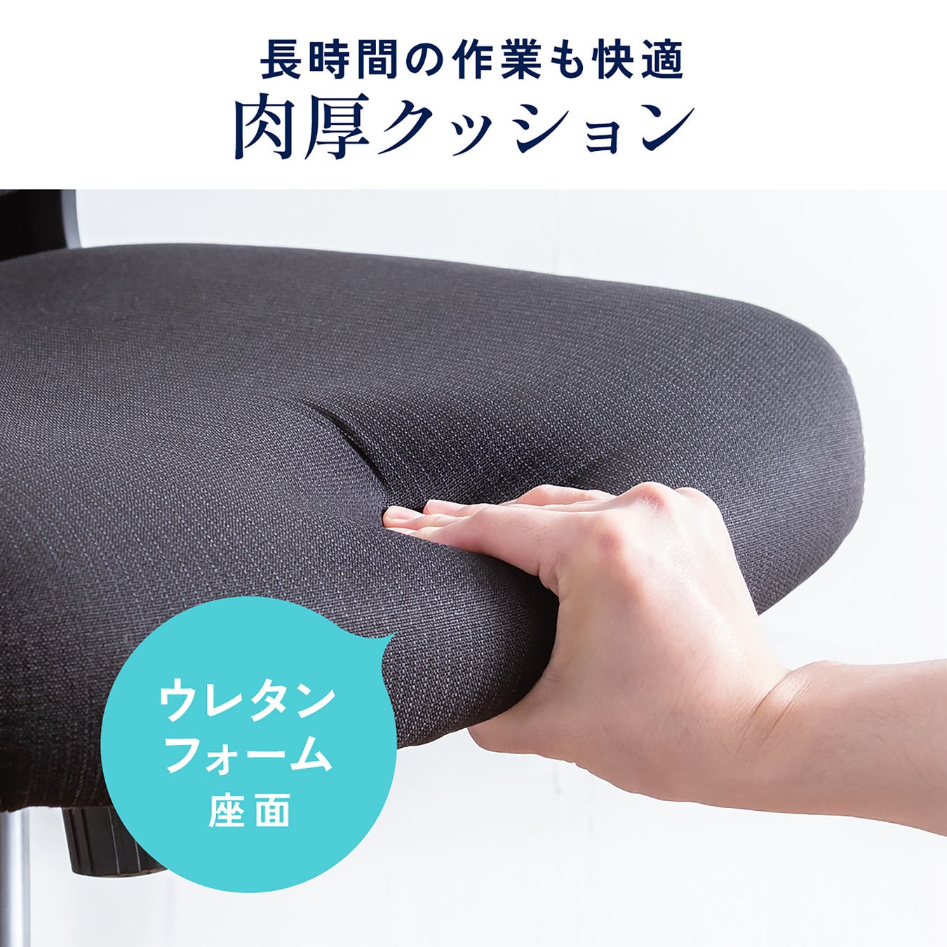背もたれと座面に採用されたメッシュ素材は、蒸れにくく通気性が抜群。暑い季節でも快適に作業を続けられます。また、柔軟性のある素材で長時間座ってもお尻や背中にストレスを感じにくいです。