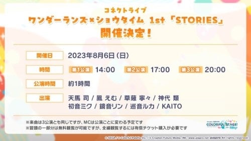バーチャルライブ「コネクトライブ」の本公演、『コネクトライブ ワンダーランズ×ショウタイム 1st 「STORIES」』を2023年8月6日(日)に開催することを決定いたしました。