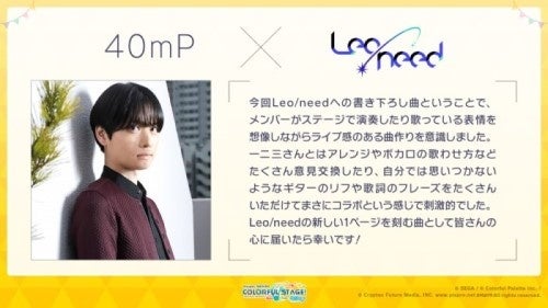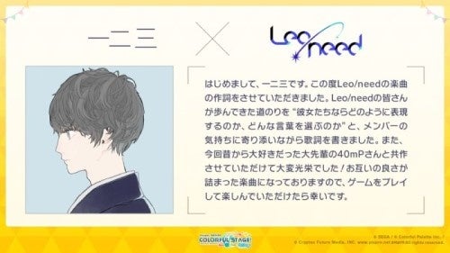 ナノウさんには「25時、ナイトコードで。」のユニット楽曲、一二三さん×40mPさんには「Leo/need」のユニット楽曲を提供いただきます。
