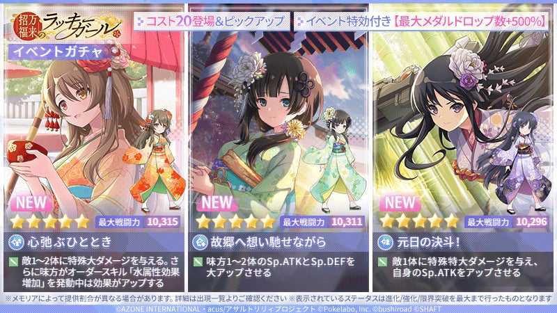 - ★5メモリア「心弛ぶひととき」「故郷へ想い馳せながら」「元日の決斗!」「罰執行のお時間です」など新メモリアが登場するガチャが開催!
