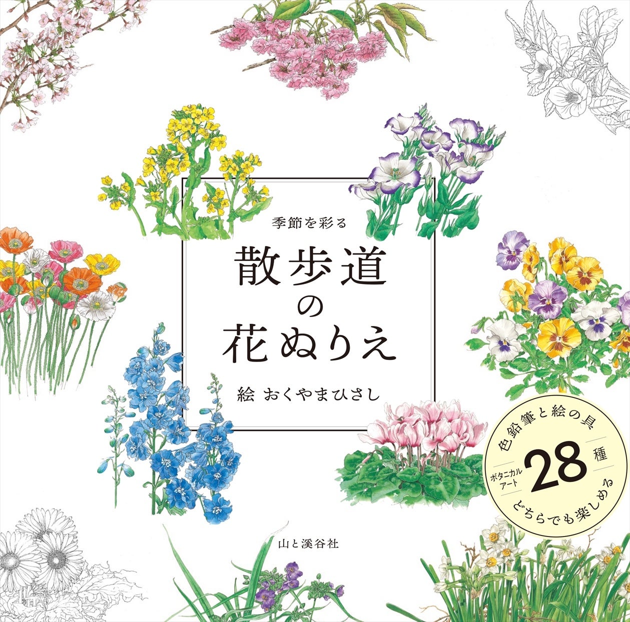ボタニカルアートの第一人者、おくやまひさし氏が描く、散歩道で出会える身近な花28種を収録したぬりえ本。鮮やかな色彩の原画をお手本に、初心者でも手軽に、バラエティに富んだ花のぬりえが楽しめます。彩色は色鉛筆と水彩絵の具、どちらにも対応。季節を彩る花を、より身近に感じられる1冊です。