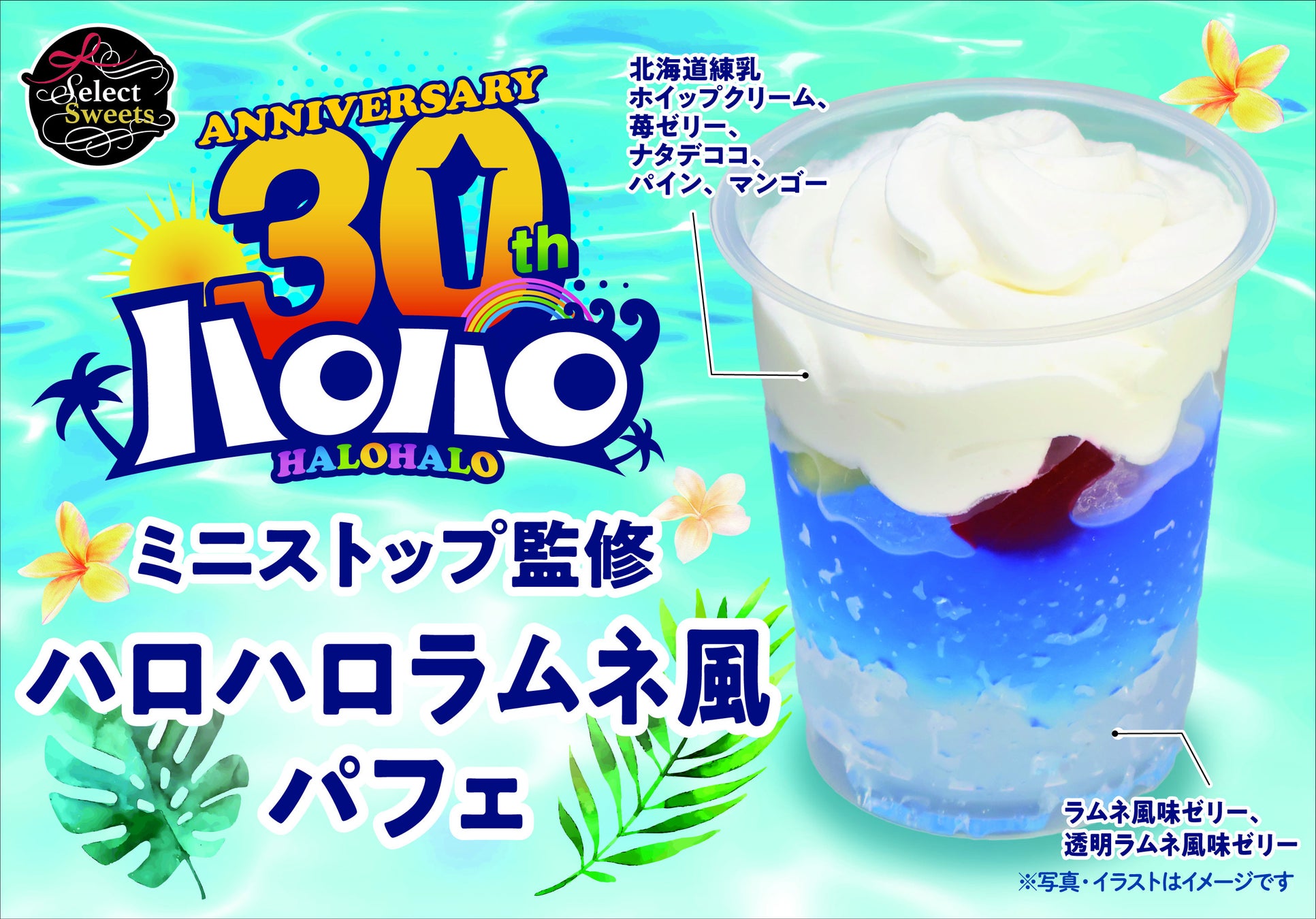 30周年を迎えたミニストップ夏の風物詩「ハロハロラムネ」を再現した爽やかなパフェがイオンに登場!7月18日(金)から期間限定販売。