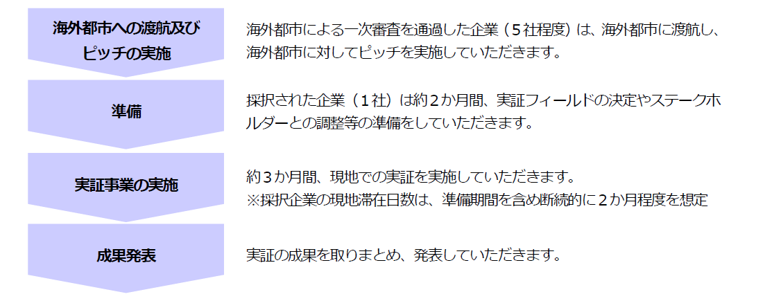 ・スタートアップが現地を訪問し、海外都市に対してピッチを実施していただきます(事前審査あり)
