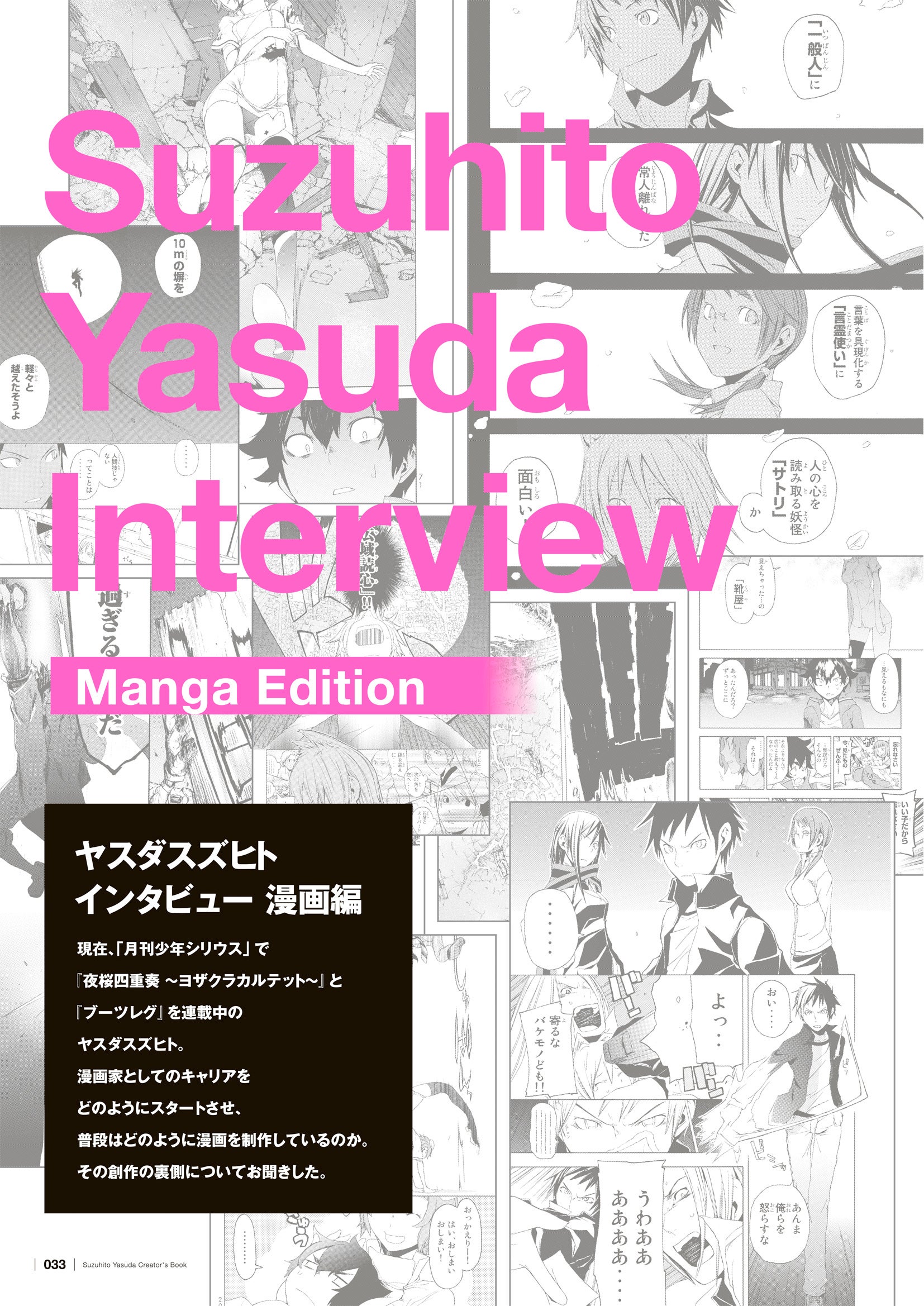 ヤスダスズヒトが憧れていた漫画家・曽田正人氏との対談をはじめ、親交の深いイラストレーター・村田蓮爾&LAMとの鼎談、『デビルサバイバー』や『ペルソナ』シリーズといった人気ゲームを数多く生み出すアトラスクリエイターたちとの鼎談など、他では聞くことのできない貴重な対談・鼎談を収録。