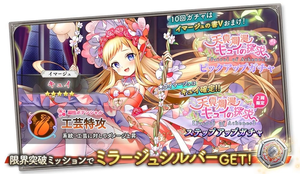 また、ステップ5にて★5イマージュ「キュイ」を確実にゲットできる5ステップアップガチャも同時開催いたします。