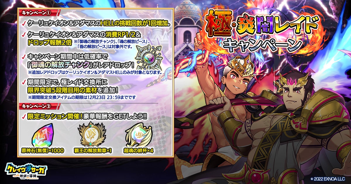 『クレイヴ・サーガ 神絆の導師』極・炎闇レイドキャンペーン開催!攻略に役立つ期間限定キャラも復刻ガチャに登場!