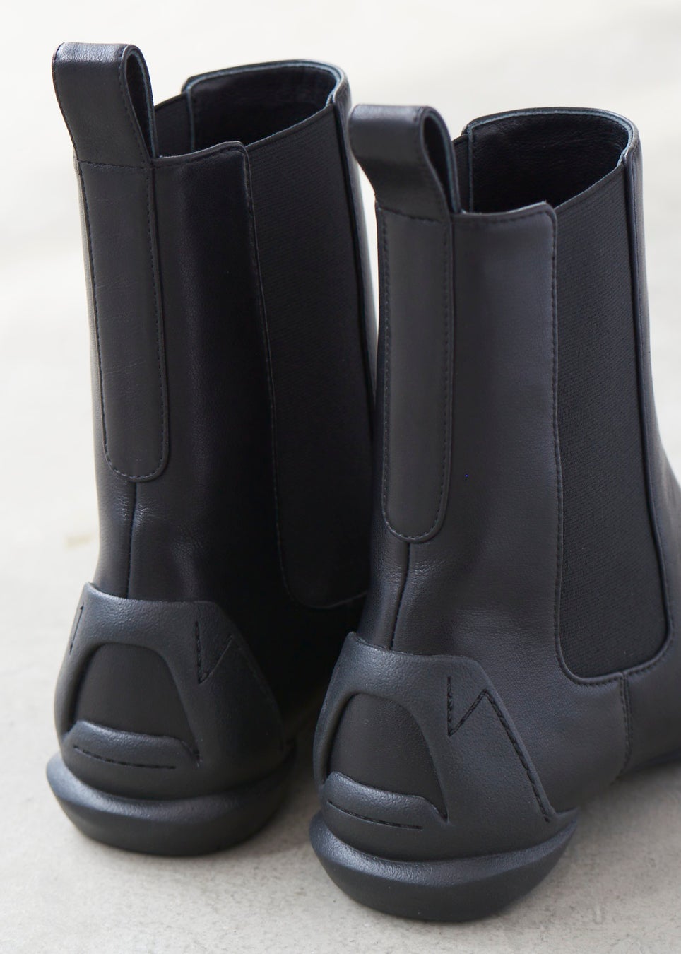 ブランドのアイコンでもあるイタリア・ヴィブラム社と共同開発したヒールパーツをブーツにも搭載。かかとを包むように、柔らかいラバー素材で製作することにより、様々なかかとにフィットして、靴ずれ予防に繋がります。また、歩行時に足に吸い付くような感覚も。軟質素材のため衝撃を吸収して、足にかかる負担を減らします。