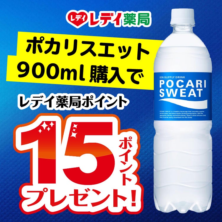 【優待内容】:ポカリスエット900ml(大塚製薬)購入でレデイ薬局ポイント15ポイント進呈