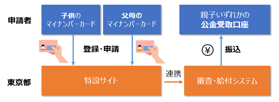 ※マイナンバーカードを親子ともに所持し、いずれかの公金受取口座を登録している場合利用可能です。