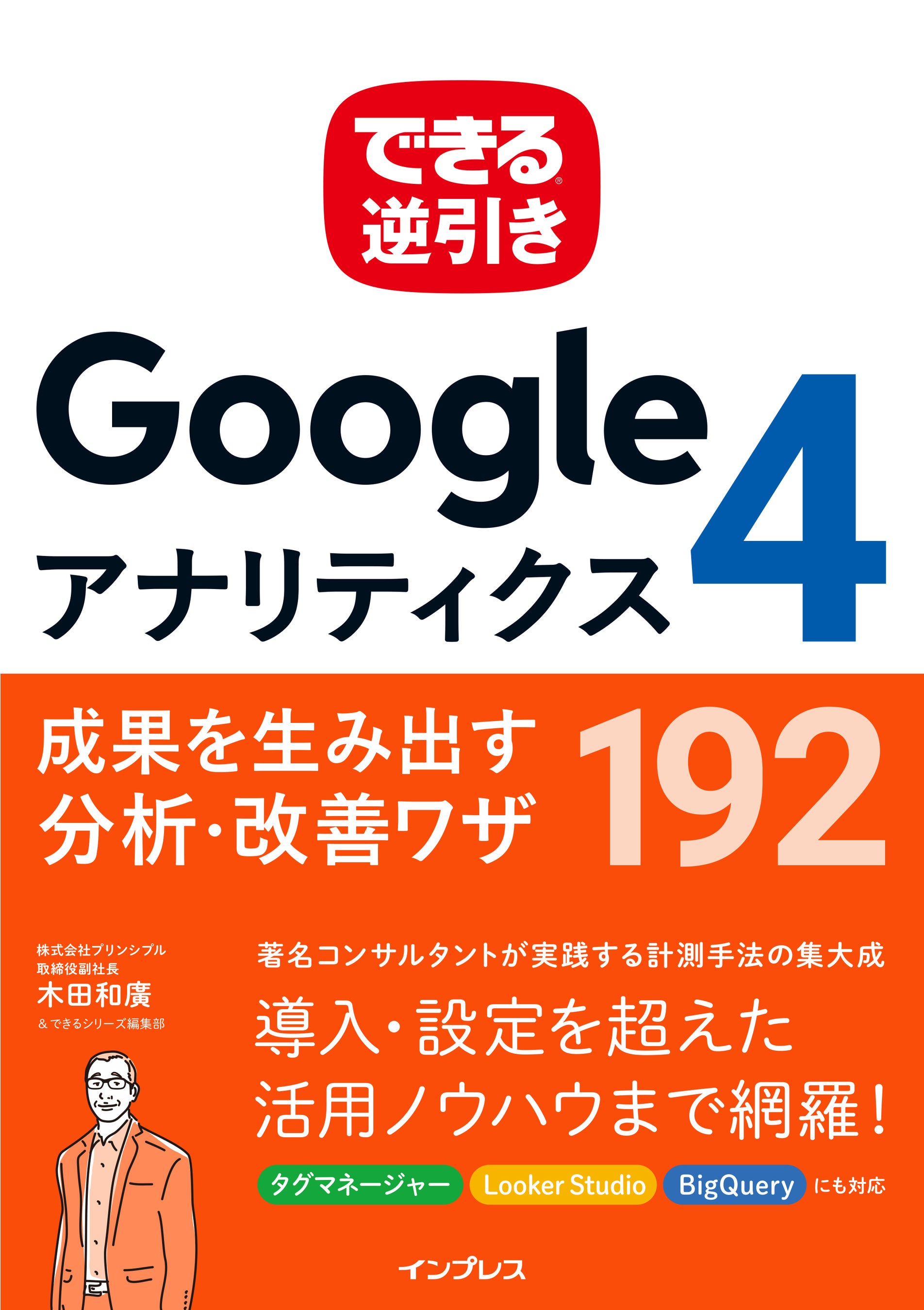 本書の著者である株式会社プリンシプル 取締役副社長・木田和廣氏は、Googleアナリティクス解説書のベストセラー『できる逆引き Googleアナリティクス Web解析の現場で使える実践ワザ 240』の著者であり、多数のセミナー登壇・トレーニング講師実績を持つGA4のスペシャリストです。木田氏が自ら実践・検証してきたワザを満載した本書は、これからGA4での計測を本格的に始めたい方はもちろん、GA4をより活用することでサイトのコンバージョンやLTVの向上を図りたい方にも、最適な一冊となっています。