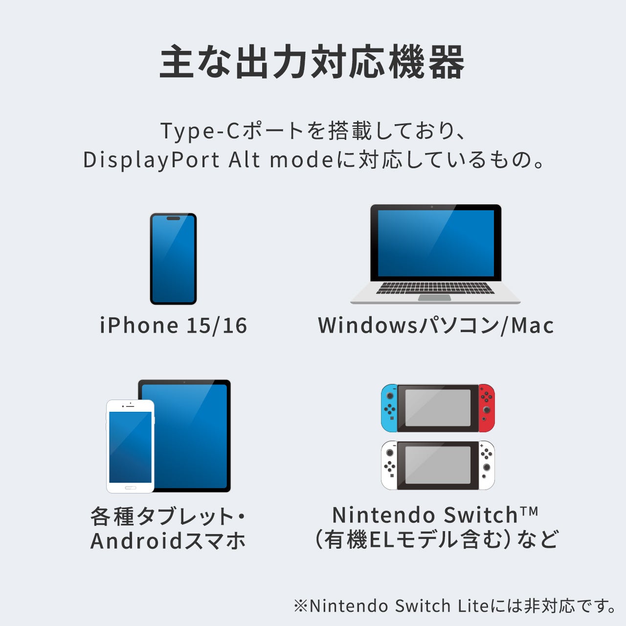 ※USB Type-Cポートを搭載し、DisplayPort Alt Mode(映像出力)に対応している機器でご使用いただけます。