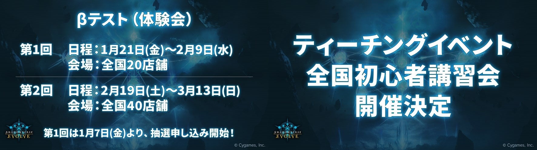 第1回は明日1月7日(金)より抽選申込ができますので、Shadowverse EVOLVE公式サイトを是非チェックしてください。