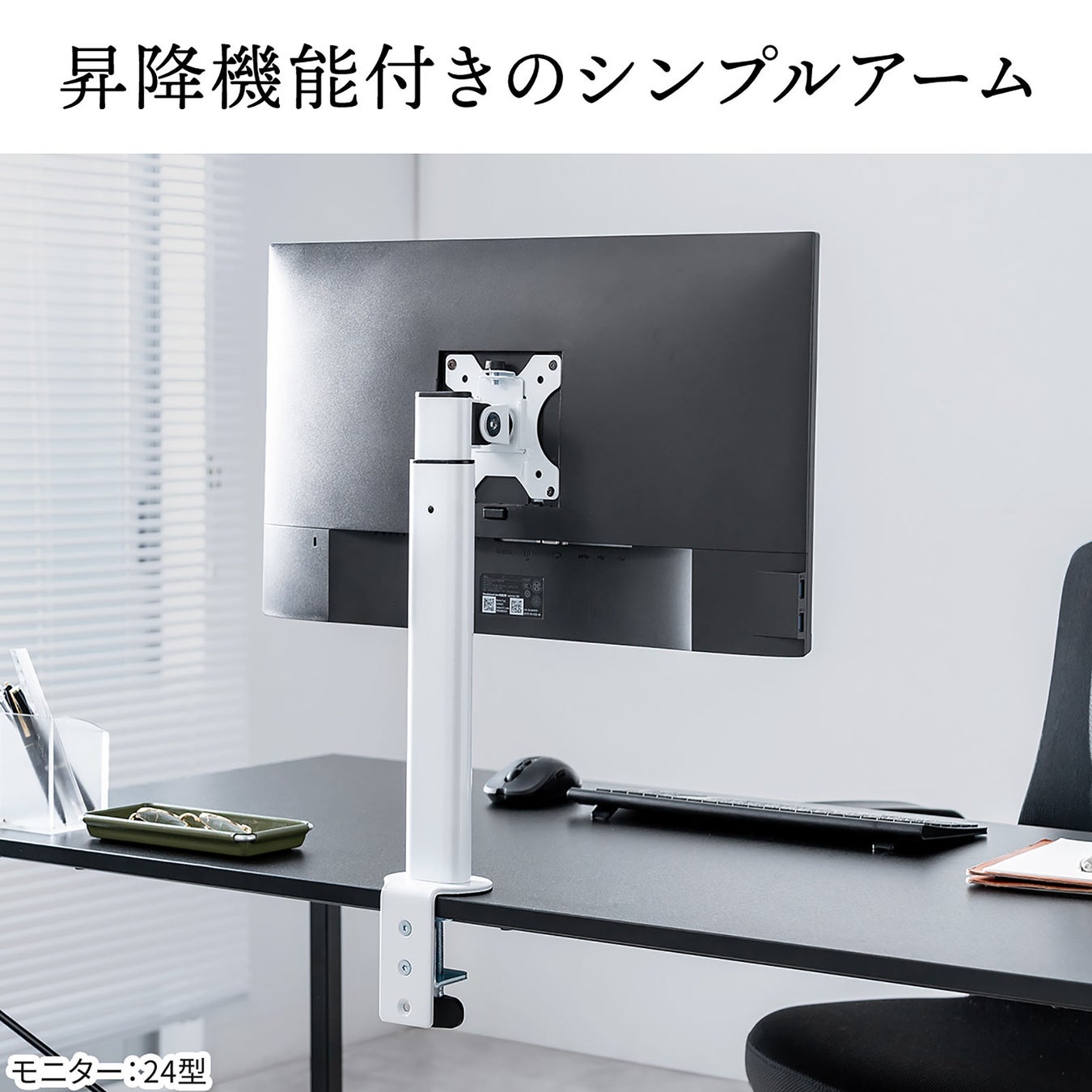モニターアーム クランプ ディスプレイアーム 1画面 最大32インチ 高さ調整対応 耐荷重10kg ホワイト