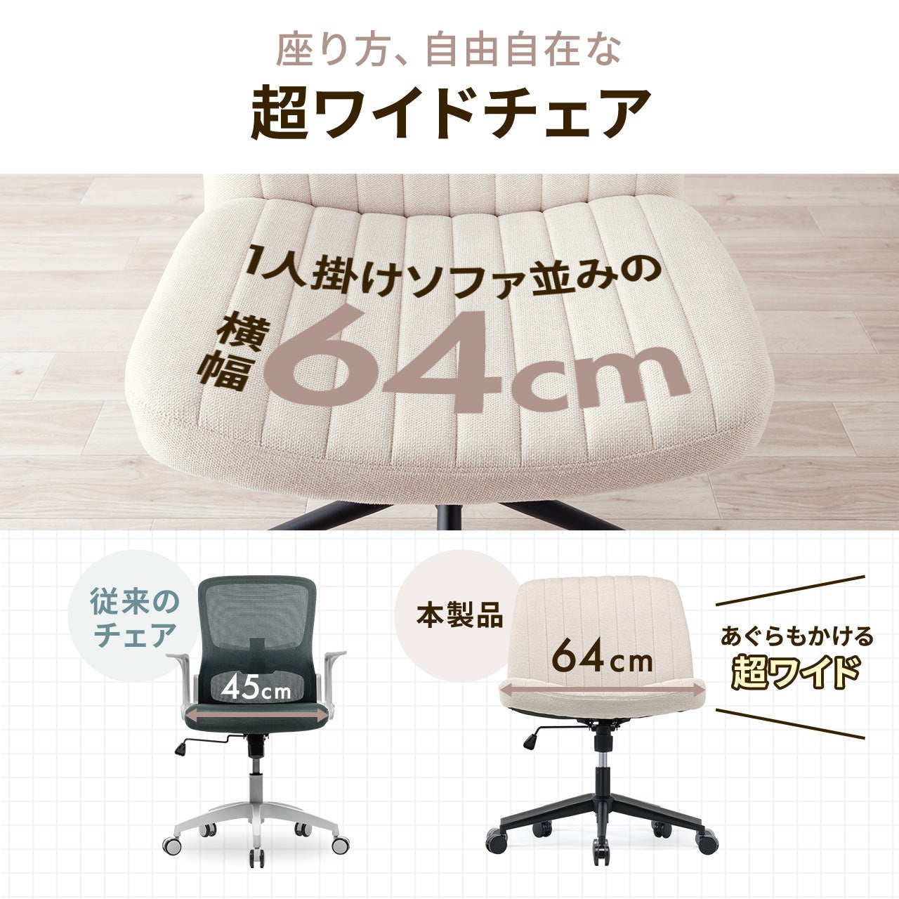 あぐら椅子 胡坐いす ワイドチェア ソファチェア 幅64cm 幅広座面 ロッキング キャスター ガス圧昇降 超ワイド設計