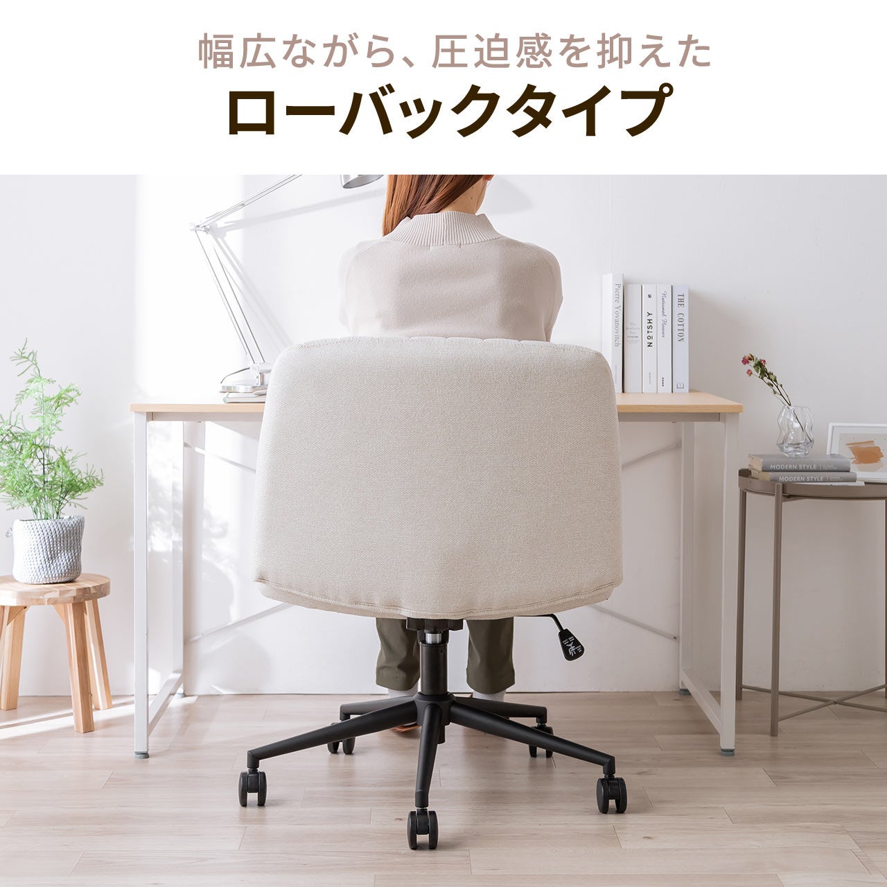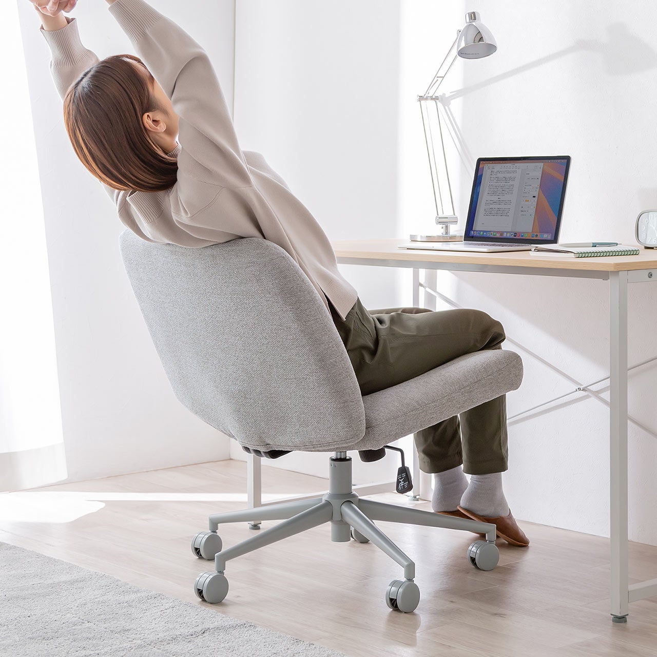 幅広ながら圧迫感を抑えたローバック背もたれです。ロッキング機構を搭載しているので、ゆらゆらとゆれながら使うことができます。