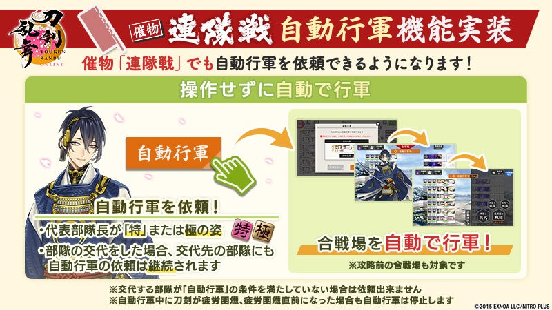 また、「連隊戦」へ新たに「自動行軍」機能を実装いたしました。