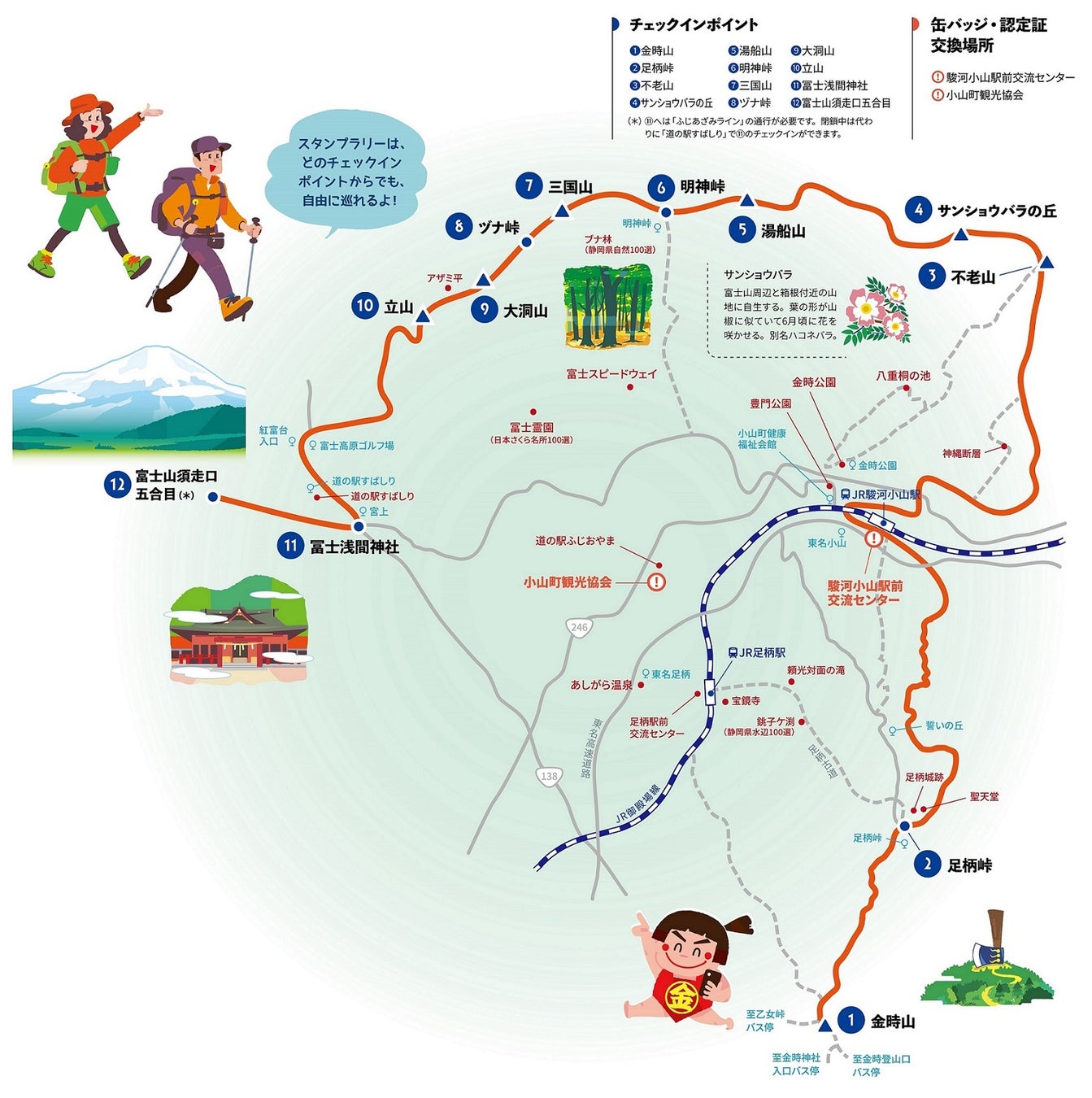 金時山、足柄峠、不老山、サンショウバラの丘、湯船山、明神峠、三国山、ヅナ峠、大洞山、立山、冨士浅間神社、富士山須走口五合目